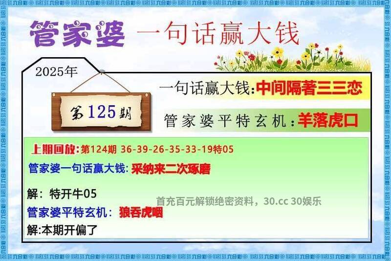 125期管家婆一句话:中间隔著三三恋